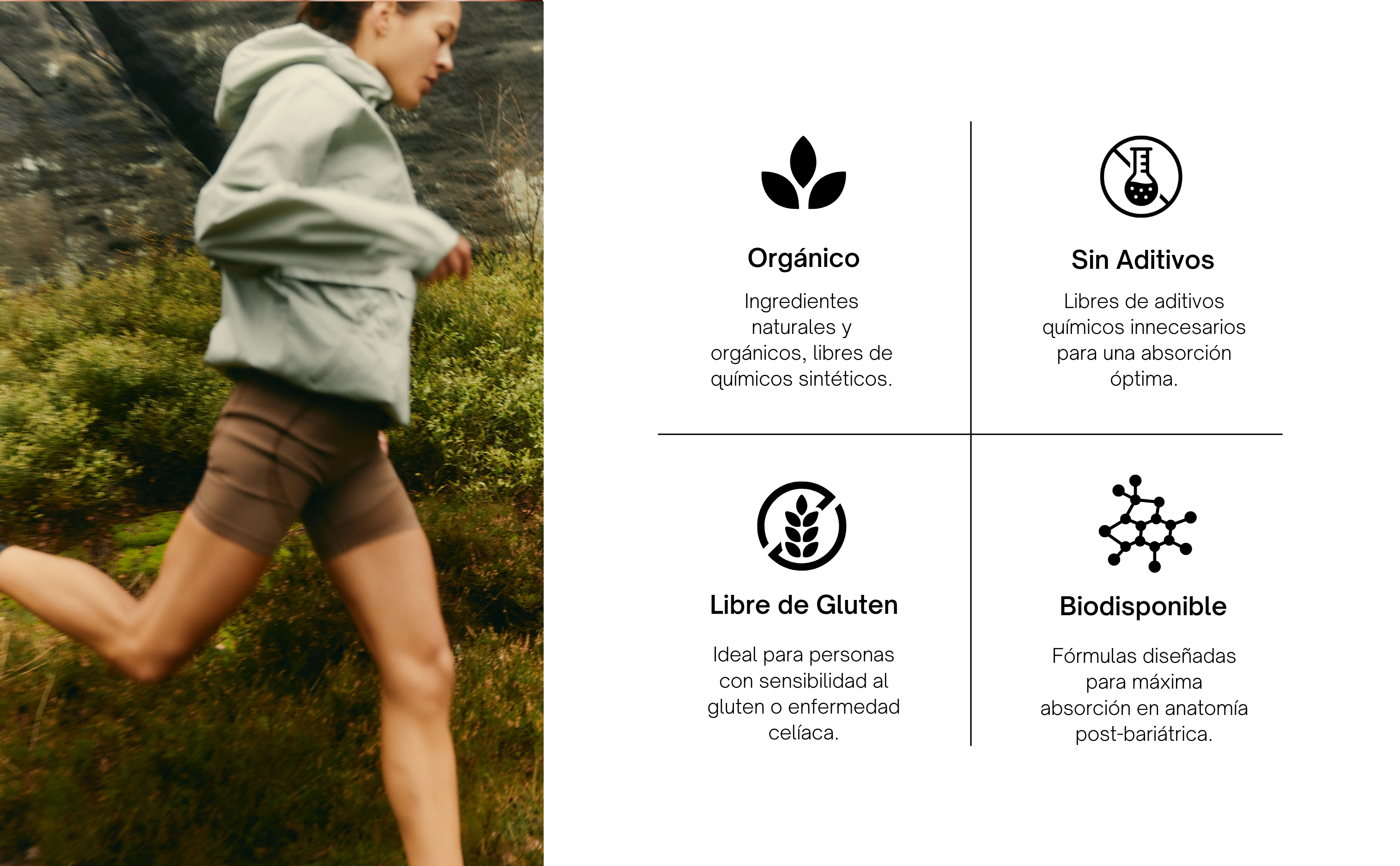 Efectivo: Nuestras fórmulas combinan nutrientes esenciales con una paleta de ingredientes orgánicos. Potente: Dotamos a cada fórmula con las concentraciones más efectivas y biodisponibles. Seguro: Cápsulas fáciles de deglutir y características de calidad que hacen que sean ideales para uso post-quirúrgico.